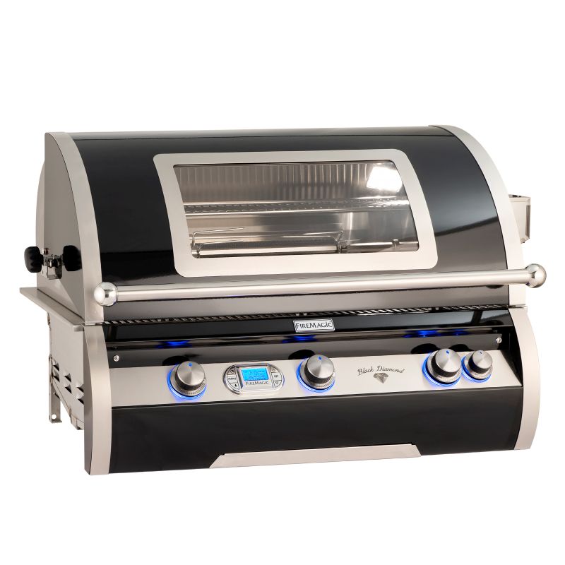 H790I-8E1N*-W The Black Diamond Edition Grill Series showcasing a porcelain coated finish with satin stainless steel access. Featuring our top of the line Fire Magic Echelon Diamond, this grill creates a fusion of performance, beauty and innovation. With sleek lines, a unique contoured face and state of the art features such as hot surface ignition, blue back-lit knobs and a Magic View Window, the echelon Black Diamond Series re-defines luxury in grilling. Made in America out of 304 Stainless steel.
