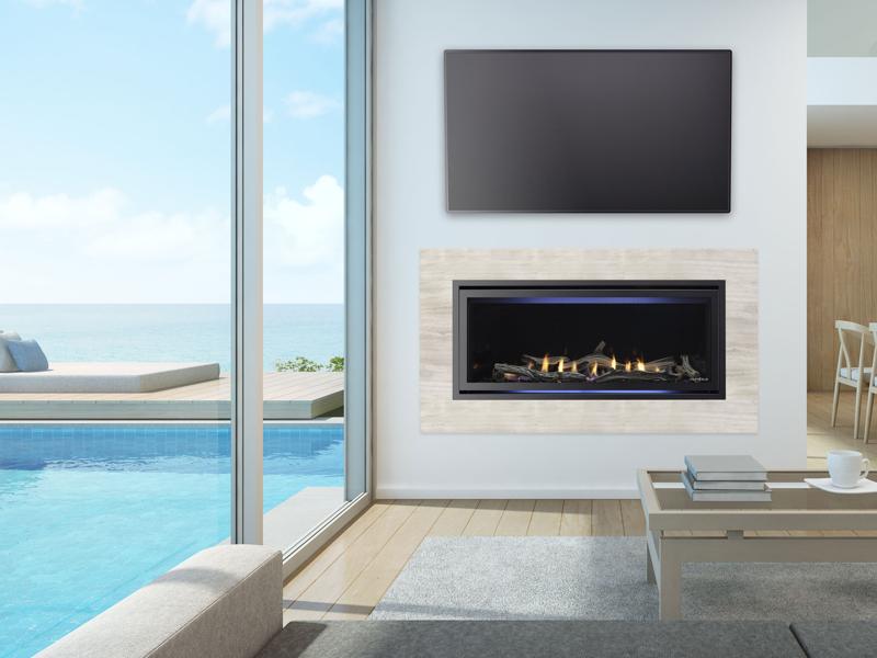 The Escape See-Through gas fireplace delivers stunning two-sided viewing with anti-reflective glass and direct vent technology for a breathtaking focal point between rooms.