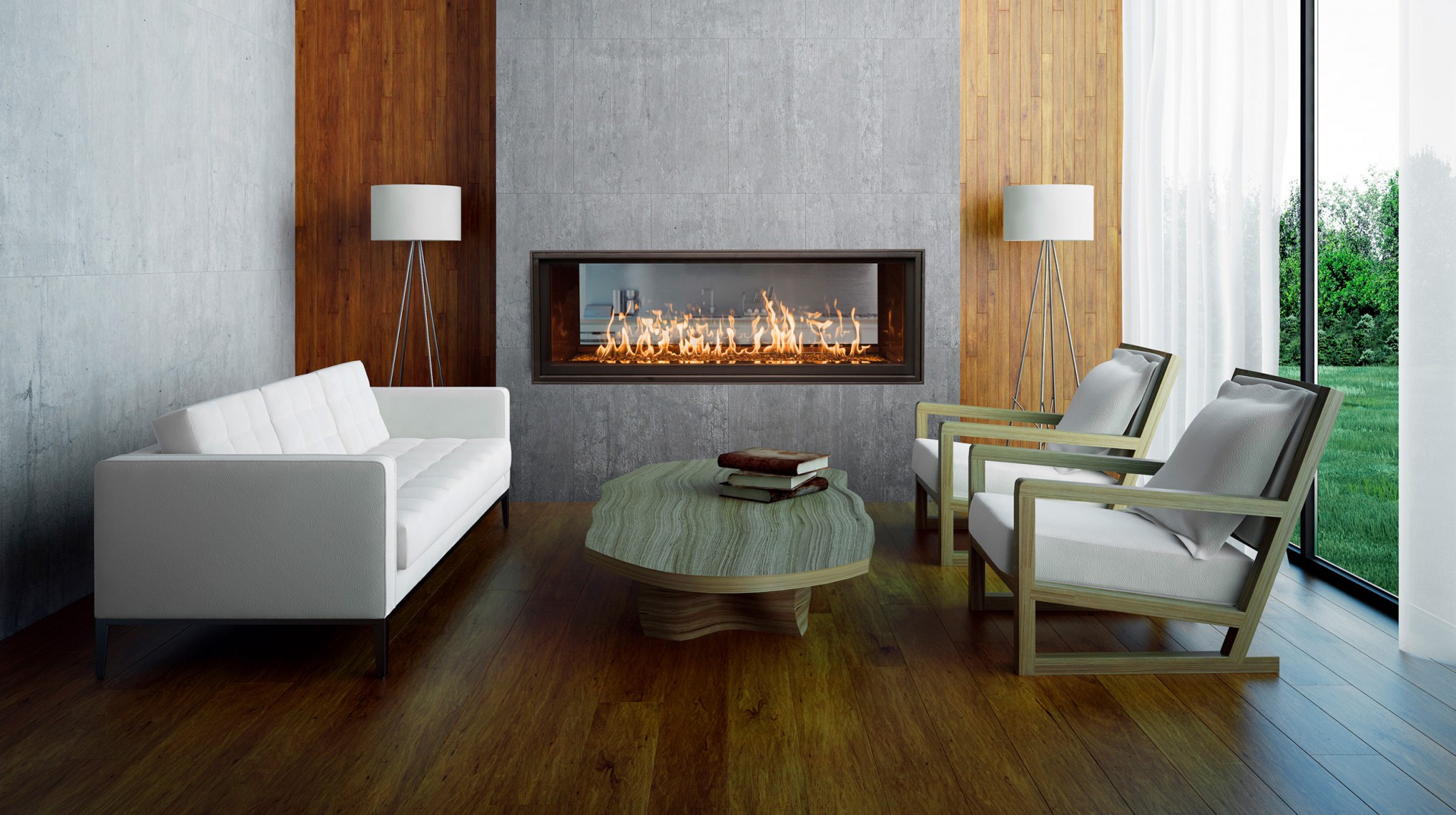 A double-sided landscape of vibrant flames. The ultimate statement piece — the WS54 See-Thru's stunning flame is the focal point of two rooms at once, giving the look of luxury from every possible vantage point.